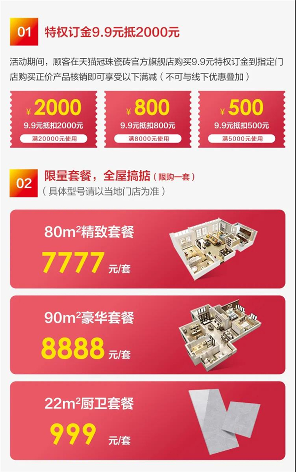 冠珠618年中大促,即日起至6月20日,卖的是品质空间,承载的是美好生活故事。欢迎到冠珠瓷砖各大门店或 天猫官方旗舰店咨询了解: