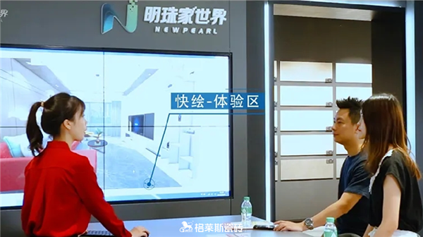 明珠家世界快绘体验互动系统,可实现快速出图,预见未来家的样子无需等待。消费者还可以在专业设计师的指导下自主DIY设计,让选砖、设计成为有趣的体验。
