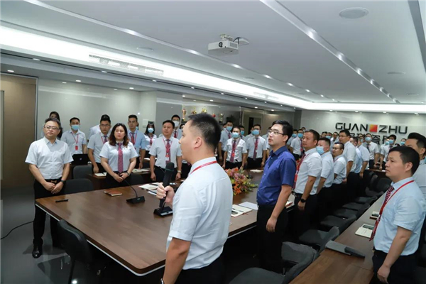 百人将士团队宣誓。会议最后,冠珠品牌副总经理唐楚雄唐总带领近百名营销将士精神抖擞地进行团队宣誓,将士们以饱满的热情、昂扬的斗志展现了决胜战争的决心,向着目标奋勇冲锋、全速前进,誓达目标,也充分体现了工作将士们的担当与信心。