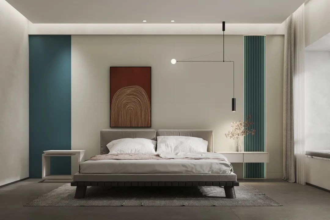 Using Tiffany blue as the main color of the bedroom can make people calm down, and the overall space looks simple and elegant and comfortable. With soft tiles, it has a feeling of low luxury and comfort. With soft sight and comfortable feeling, it decorates the warmth of the bedroom.