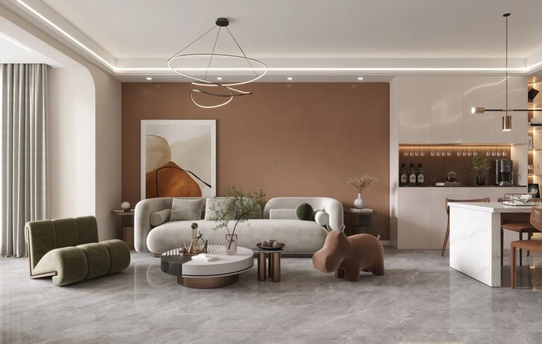 The background wall of the living room is made of Van Dyke Brown Mo Landi, a touch of soft brown, which comes from the most critical eyes and unique demands, just like picking up fresh soil and sprinkling it in the space, so that the most primitive simplicity can enrich every inch of space.