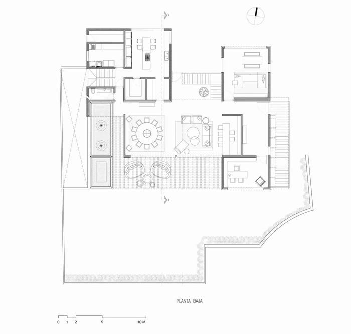 客厅、餐厅和酒吧融合成一个流动的环境,带有一面水镜,作为主要通道的视觉亮点。